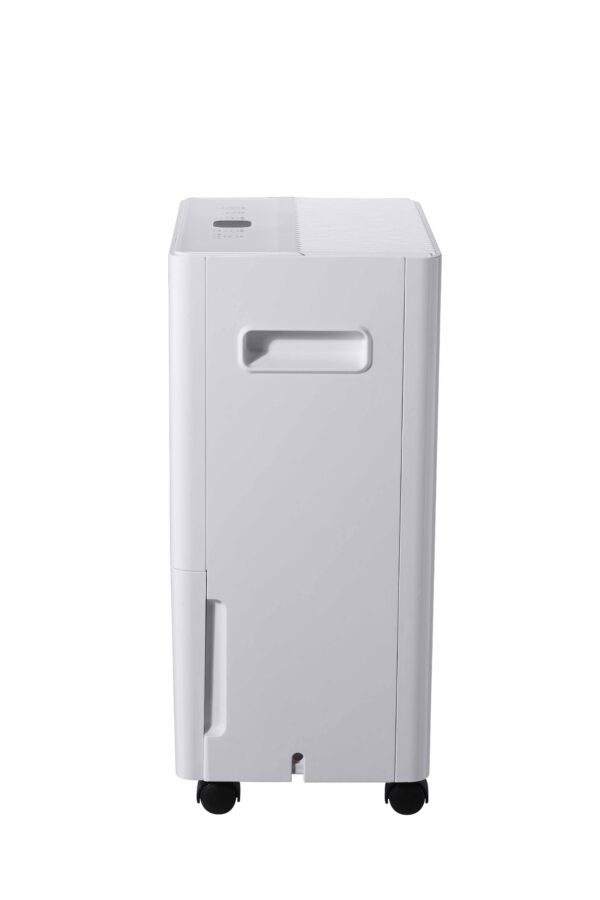 Our 6L/day dehumidifier is designed to tackle humidity issues in spaces ranging from 25-45㎡. Whether it’s your bedroom, basement, or office, this device maintains optimal humidity levels (30%-80% RH) to prevent mold, allergens, and dampness. With a compact size of 255x180x400mm and a lightweight build (9kg), it’s both space-saving and portable. The built-in wheels and handle allow you to move it effortlessly between rooms.